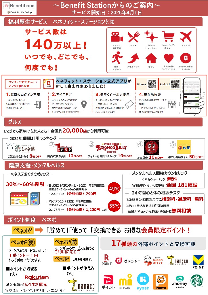 【加入者の皆様へ】 ~令和8年4月1日よりサービス開始~ 【総合福利厚生サービス】「ベネフィット・ステーション」のご案内