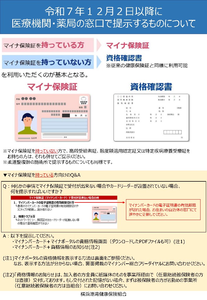 【加入者の皆様へ】令和7年12月2日以降に医療機関・薬局の窓口で提示するものについて